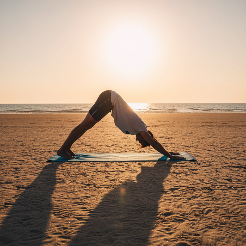 The setting can enhance the visual message of the pose. A wide landscape, such as a beach or an open field, creates a contrast between the stillness of the body and the vastness of the world around it. It also works beautifully in minimalist interiors, where the body’s lines become the focal point. Side lighting highlights muscle tension and the shape of the arms, while a clear background allows the practitioner’s silhouette to stand out clearly.
