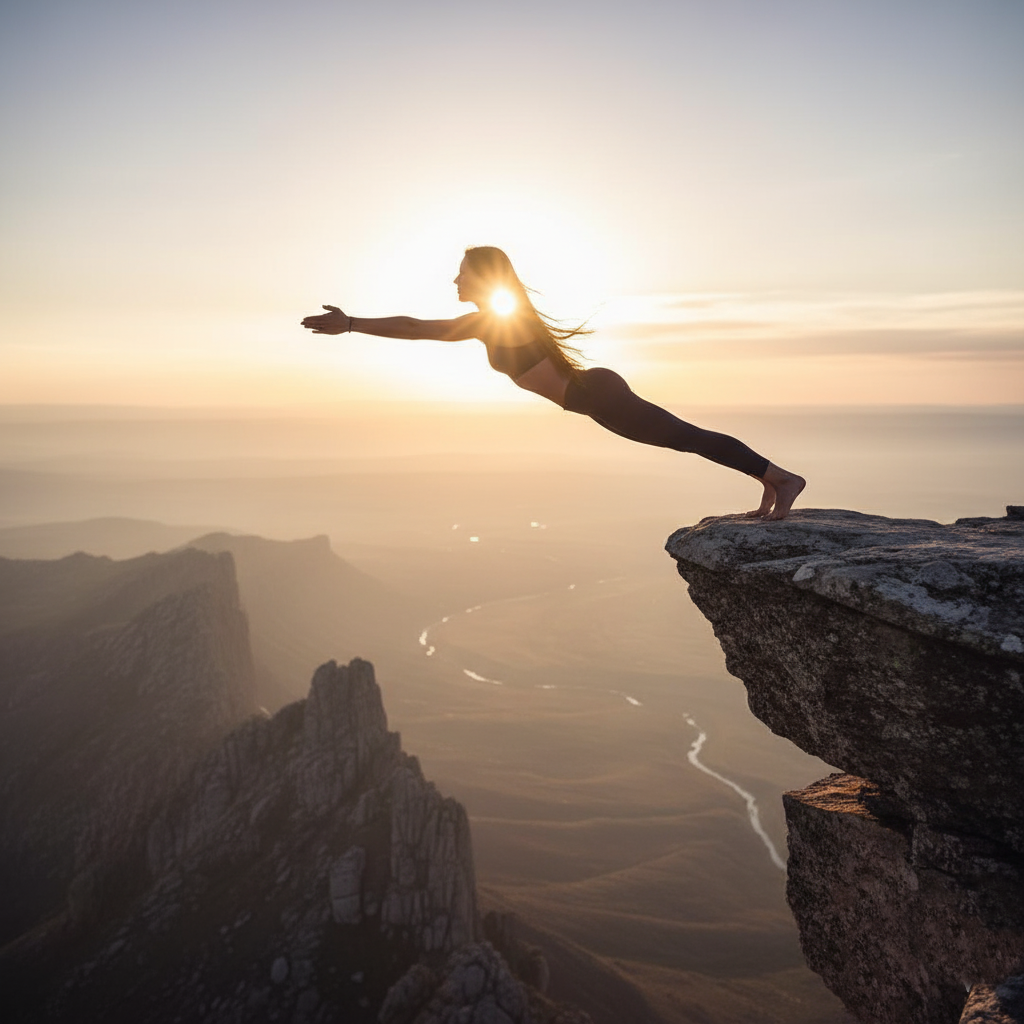 Visually, this pose offers a powerful aesthetic. Open backgrounds, such as a field or a rooftop with a clear horizon, accentuate the feeling of flight. It can also look spectacular in minimalist interiors with natural light, where the body’s shadow is projected onto the floor, reinforcing the visual balance. Morning or evening light adds warmth and drama, ideal for highlighting the practitioner’s silhouette.