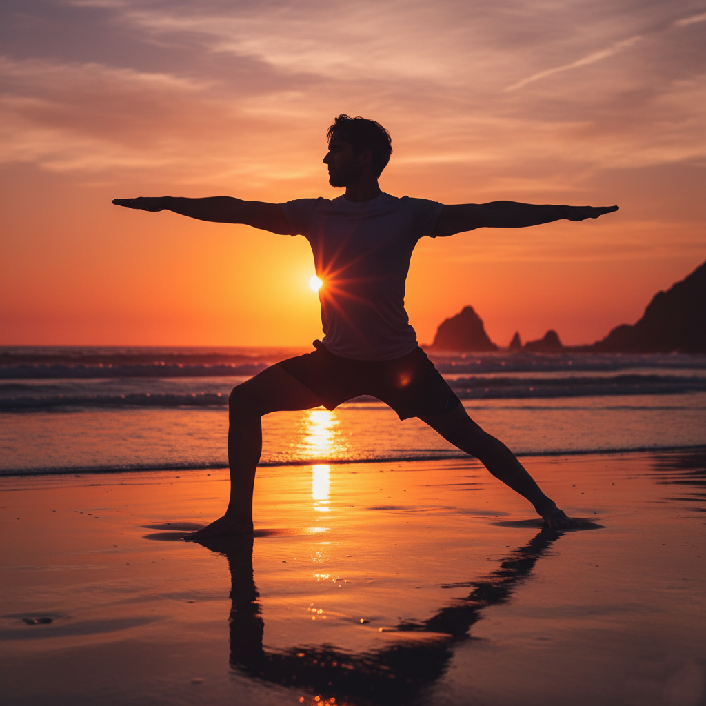 As for the setting, natural or minimalist backdrops enhance the impact of the pose. A beach, a terrace with a view of the sky, or even a studio with a neutral background and diffused light can create a tranquil and contemplative atmosphere. Side or back lighting highlights the body’s lines and muscular tension, creating soft shadows that emphasize the geometric structure of the pose.