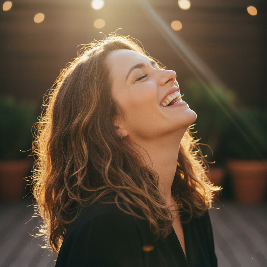 One of the most powerful poses for capturing the essence of joy is laughing with your head slightly tilted back. This posture projects a sense of freedom, carefree abandon, and self-confidence. Unlike discreet or restrained smiles, this open laughter reveals a moment when the person is swept away by emotion, without worrying about their surroundings or the camera. It’s a perfect pose for those who want to convey energy, authenticity, and a radiant personality.