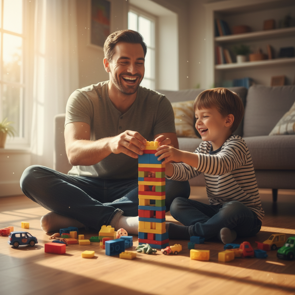 One of the most genuine and expressive poses for photos with toys is capturing the moment a person sits or lies down on the floor to play. This perspective breaks down the barrier between adult and child, showing closeness, joy, and authenticity. The contact with the floor—whether it’s a rug, grass, or wooden floor—helps create a relaxed atmosphere where laughter and imagination flow naturally. There are no forced postures or rigid poses, just a real moment that conveys spontaneity.