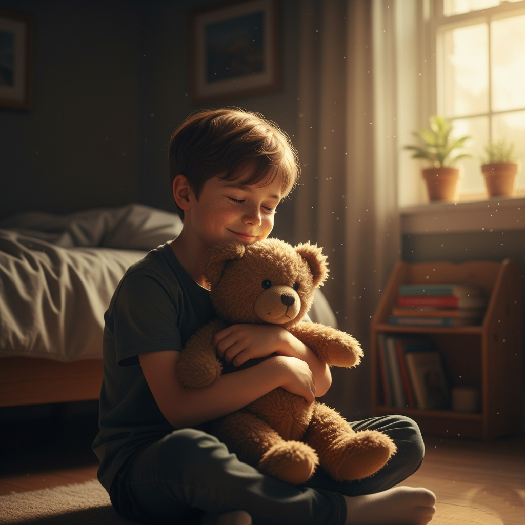 The lighting should be warm and enveloping, ideally natural, to reinforce the emotional tone of the scene. If you’re shooting indoors, a window can be your best friend: its diffused light softens features and accentuates the toy’s texture. The colors should also harmonize with the atmosphere. Pastel shades, beige, or brown create a cozy atmosphere, while a neutral background allows the focus to remain on the interaction between the subject and the toy.