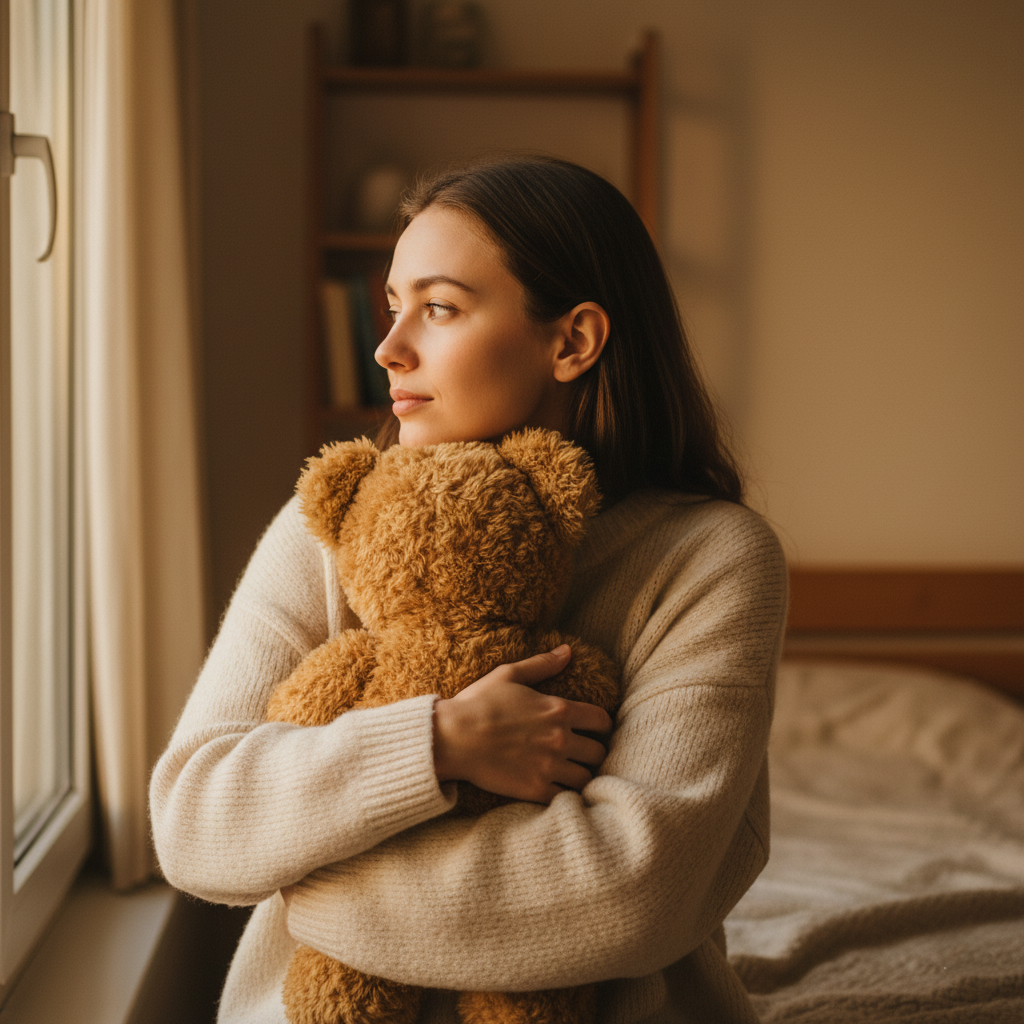 La iluminación debe ser cálida y envolvente, idealmente natural, para reforzar el tono emocional de la escena. Si se realiza en interiores, una ventana puede ser la mejor aliada: su luz difusa suaviza los rasgos y acentúa la textura del juguete. Los colores también deben armonizar con la atmósfera; tonos pastel, beige o marrones aportan una sensación acogedora, mientras que un fondo neutro permite concentrar toda la atención en la interacción entre el sujeto y el juguete.