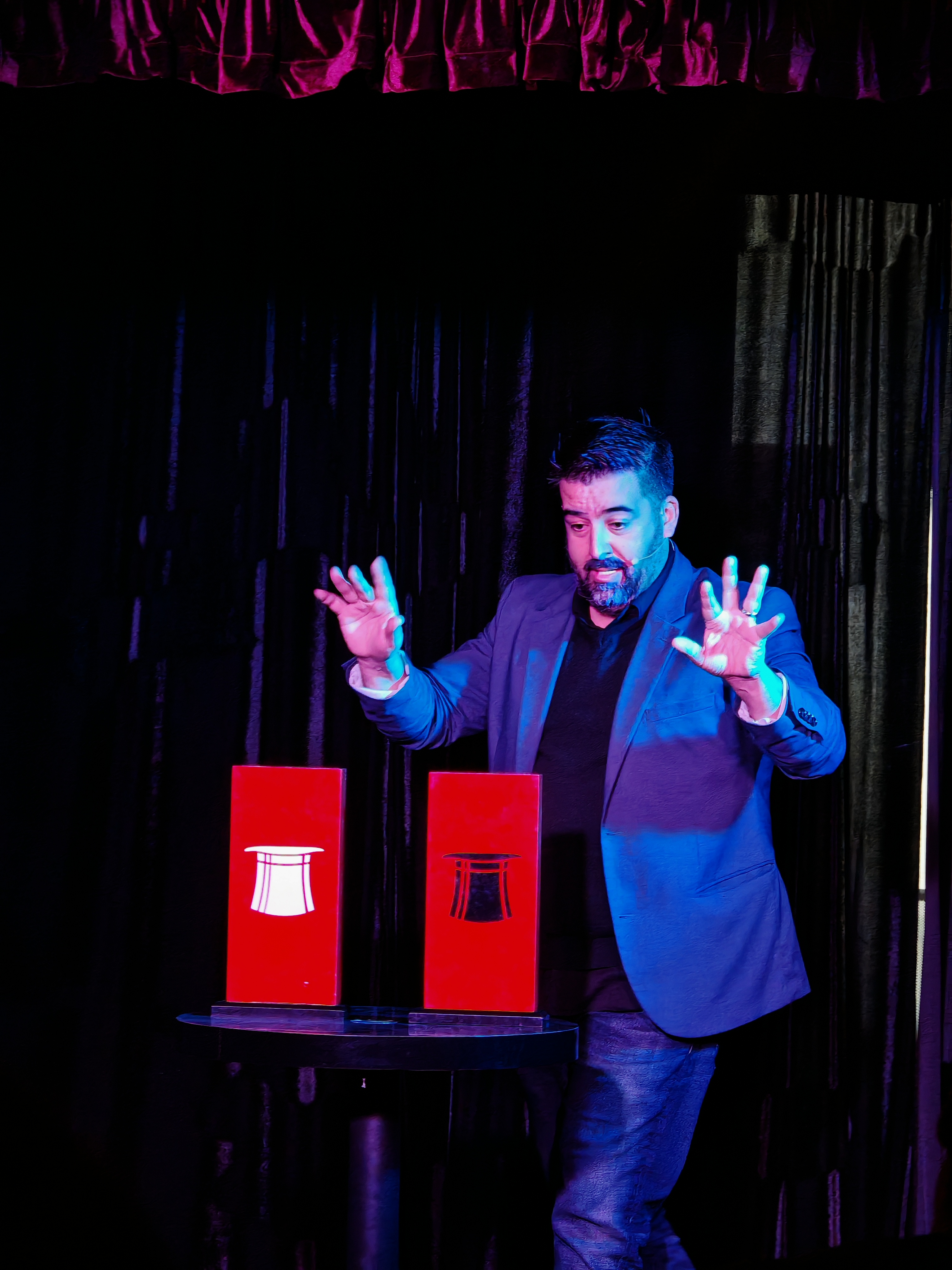 ✅ Producción fotográfica real con artistas, magos y escenografía profesional dentro del Teatro Mysterium World.
